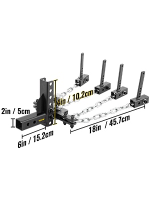 Painonjakajavetokoukku, jossa on heilunnanvaimennus, 2" vetokuula, 4" pudotus/korotus ja 4 ketjua. Soveltuu perävaunujen vetoon, kun halutaan tasata kuormaa vetoajoneuvon ja perävaunun välillä sekä vähentää perävaunun heilumista ajon aikana.