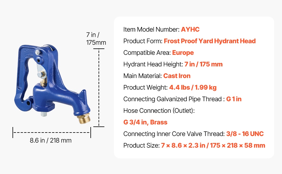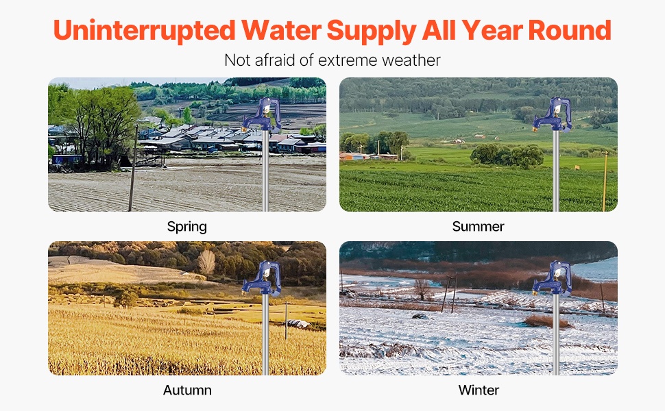 Pakkasenkestävä pihahydrantti varmistaa veden saannin myös kylmissä olosuhteissa. 3.25FT runkopituus ja 12" haudan syvyys auttavat pitämään veden virtauksen tasaisena ilman jäätymisriskiä pihassa, puutarhassa tai maatilalla.