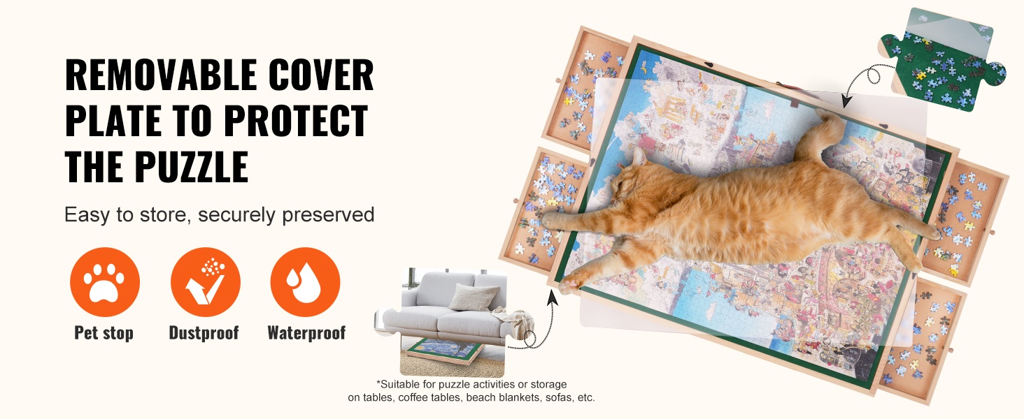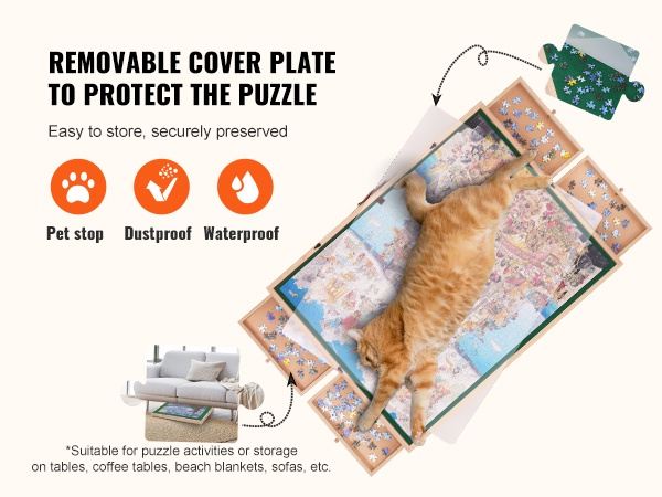 Suuren palapelin kokoaminen vie aikaa. Läpinäkyvä PP-muovinen suojalevy peittää keskeneräisen palapelin taukojen ajaksi ja suojaa sitä vedeltä ja pölyltä. Kansi auttaa myös pitämään lemmikit ja pienet lapset loitolla palapelin paloista.