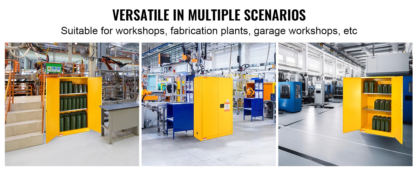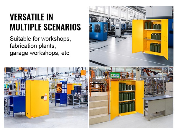 Palavien nesteiden säilytyskaappi soveltuu esimerkiksi työpajoihin, tuotantolaitoksiin, huolto- ja korjaamotiloihin, autotallitöihin sekä muihin ympäristöihin, joissa palavien ja helposti syttyvien aineiden turvallinen säilytys on tärkeää.