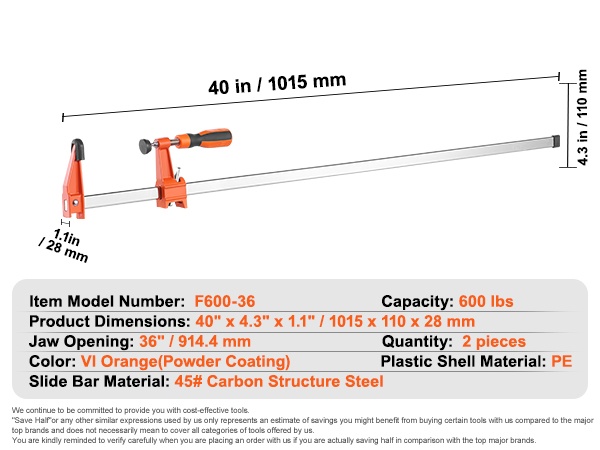 Yhden käden käytettävät puristimet ja levittäjät sopivat monipuoliseen puu- ja metallityöhön. Korkealujuuksinen muovirunko ja hiiliteräksinen liukukisko takaavat vankan otteen ja pitkän käyttöiän. Pakkaus sisältää 2 kappaletta puristimia, joissa on 24-tuumainen leuka-avauma ja enintään 300 lbs puristusvoima.