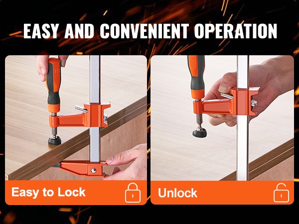 Vahvan, enintään 300 lbs puristusvoiman ansiosta puristimilla voi kiinnittää, katkaista, liittää ja asentaa erilaisia puutuotteita, kuten pöytiä, tuoleja ja kaappeja, sekä myös teräksisiä työkappaleita.