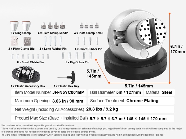 - Tuotteen enimmäiskoko (jalusta + asennettu pallo): 3.8 x 3.8 x 3.3 in / 97 x 97 x 85 mm