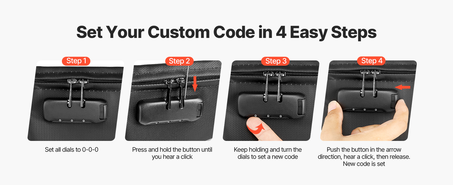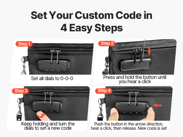 Voit määrittää oman koodisi neljässä yksinkertaisessa vaiheessa ja luoda vahvan suojamuurin arvoesineille. Yhdistelmälukko ja vesitiivis vetoketju pitävät asiakirjat ja elektroniikan paremmin turvassa kotona, toimistossa ja matkoilla.