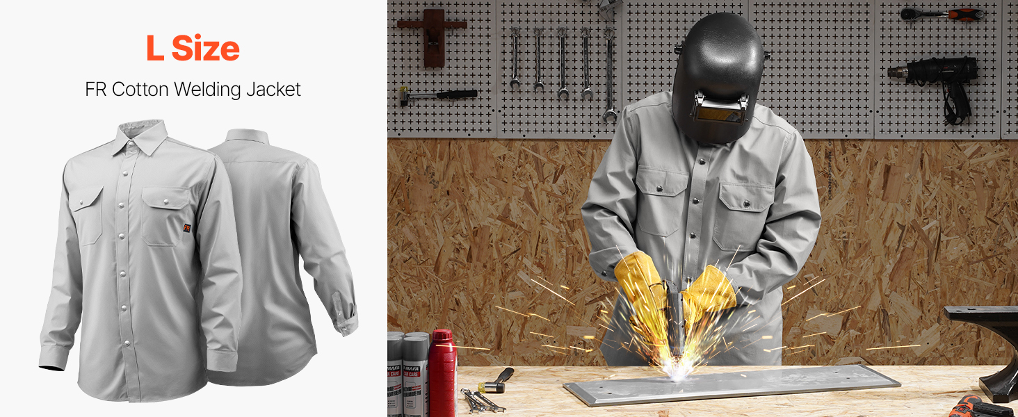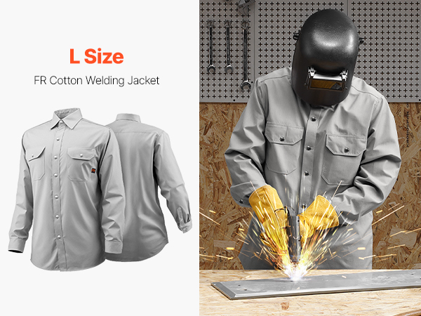 Pidä itsesi suojassa ja olosi mukavana 7 oz palosuojatusta puuvillasta valmistetulla hitsaustakilla. Materiaali on liekinkestävä, hengittävä ja konepestävä, joten se tarjoaa varman suojan kipinöitä ja liekkejä vastaan ja on helppo pitää puhtaana.