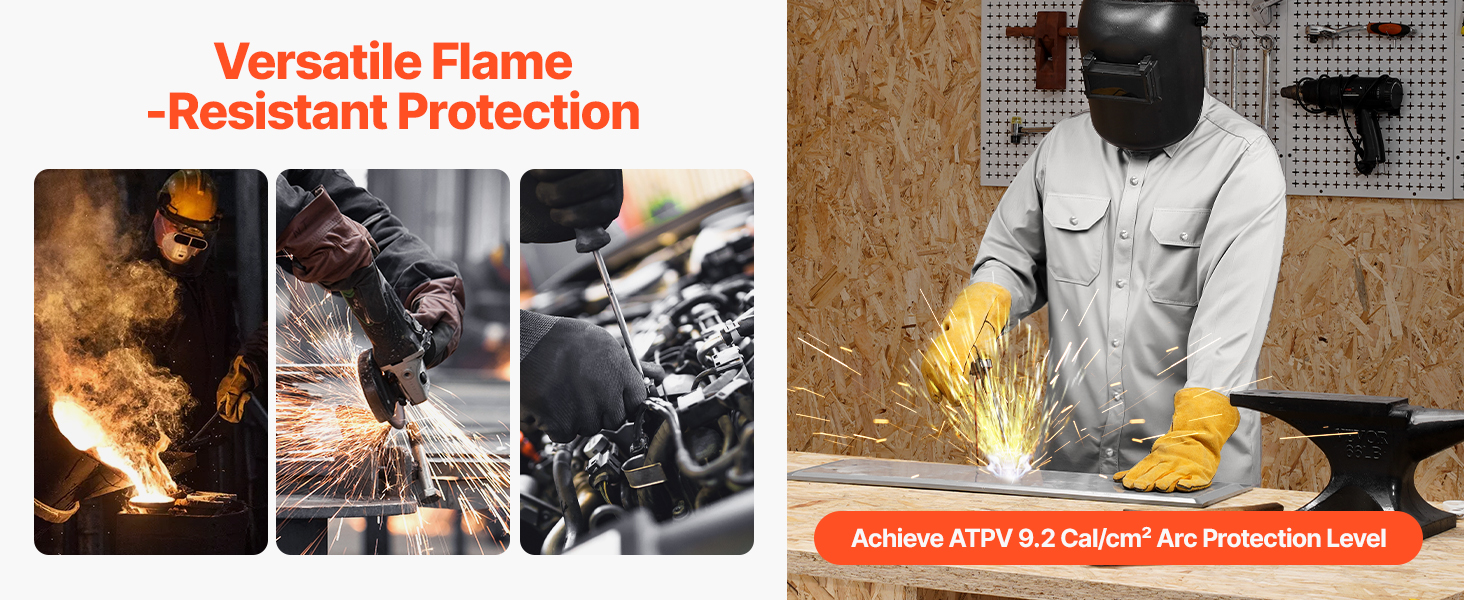 Tämä palosuojattu puuvillainen hitsaustakki tarjoaa korkean suojan, ATPV 9.2 Cal/cm² -kaaripurkaustasolla. Se auttaa suojaamaan korkeilta lämpötiloilta ja liekeiltä vaativissa työolosuhteissa.