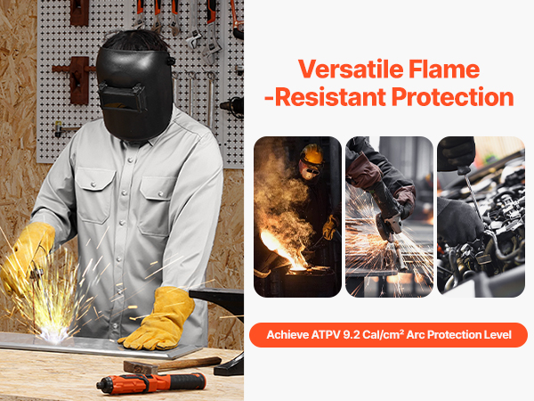 Monikäyttöinen palosuojattu puuvillahitsaustakki tarjoaa tehokkaan suojan kipinöitä ja kuumuutta vastaan. Takki täyttää ATPV 9.2 Cal/cm² -valokaarisuojaustason vaatimukset ja auttaa vähentämään valokaaren ja roiskeiden aiheuttamaa lämpökuormaa.