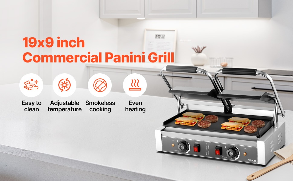 Kaupallinen paninigrilli sopii monipuoliseen ruoanvalmistukseen kotikeittiöön, kahviloihin, ravintoloihin ja ruokakojuihin. Kompakti koko tarjoaa riittävän paistoalan ilman, että laite vie liikaa tilaa työtasolta.