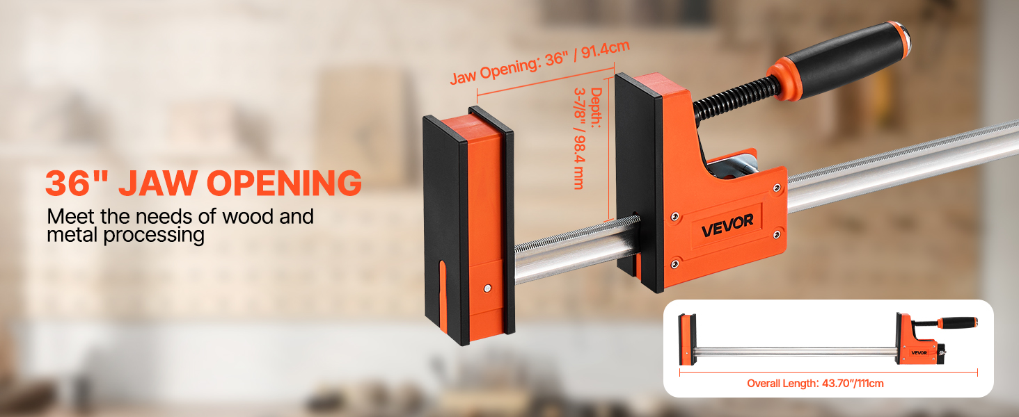 Paralleelipuristinsarja puu- ja metallitöihin, jossa on 2 kappaletta 91.4 cm pitkää tankopuristinta. Puristimien vahva PA6+GF30% -muovi ja 45# hiilirakenneteräs takaavat kestävyyden ja tasaisen puristusvoiman erilaisissa kiinnitystöissä.