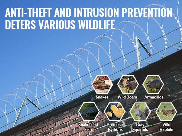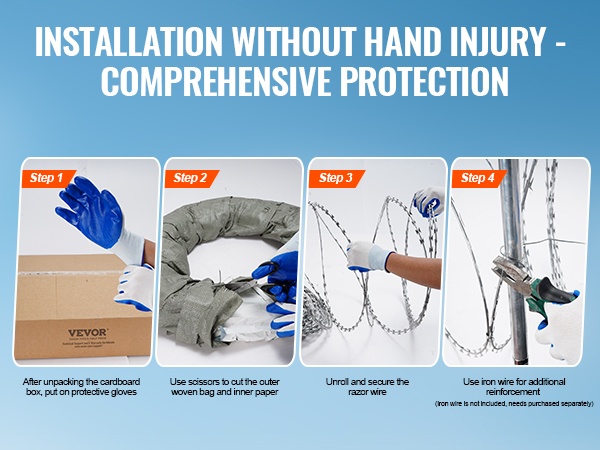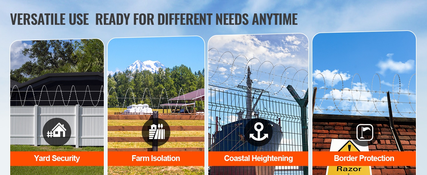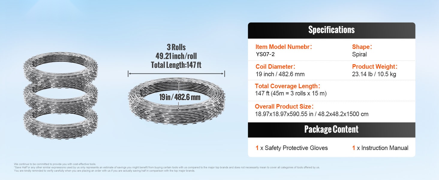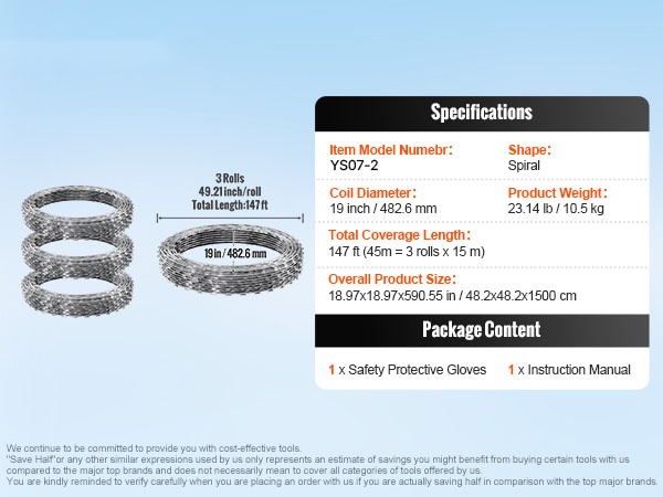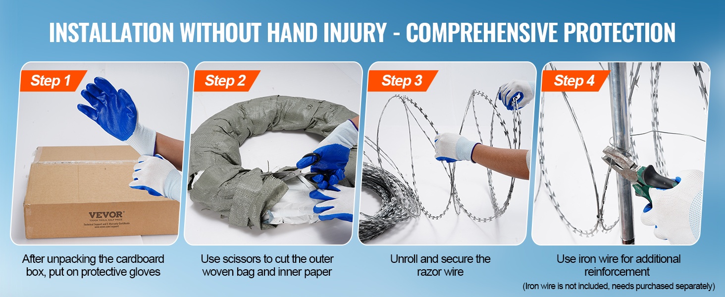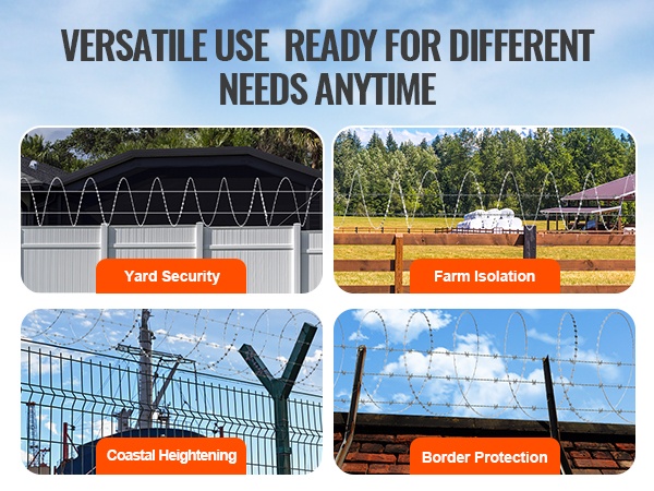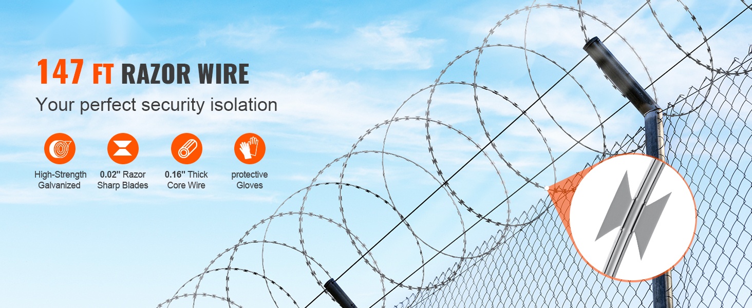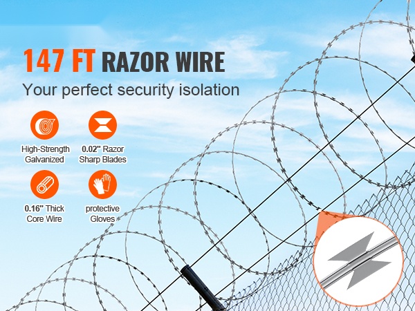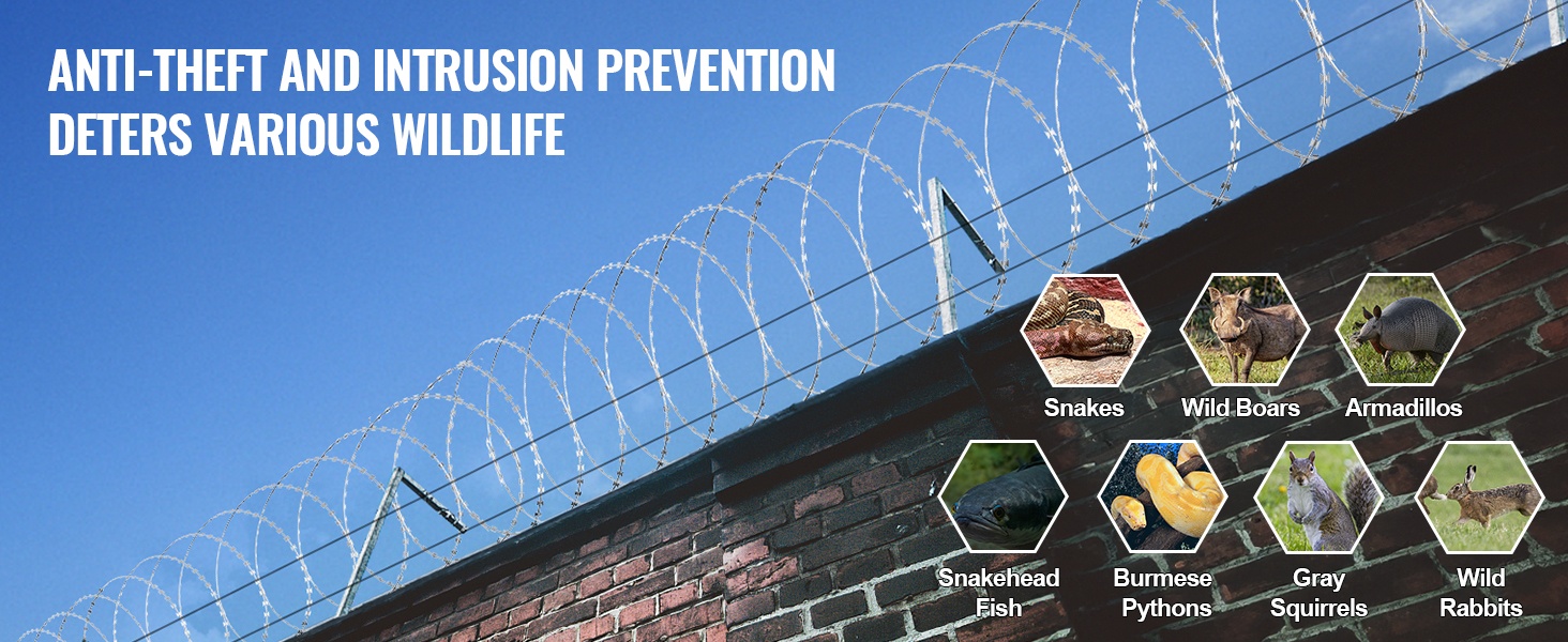 Galvanoidusta teräksestä valmistettu partalanka tarjoaa pitkän, jopa 246 ft (75 m = 5 rullaa x 15 m) kattavuuden ja vahvan suojan pihoille, puutarhoille ja maatiloille. Korkealaatuinen kuumasinkitys suojaa ruostumiselta ja pidentää käyttöikää, ja pakkaukseen sisältyvien suojakäsineiden ansiosta asennus on turvallisempaa.