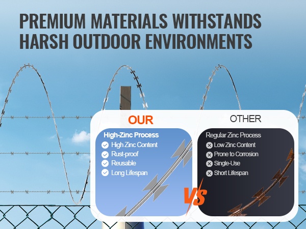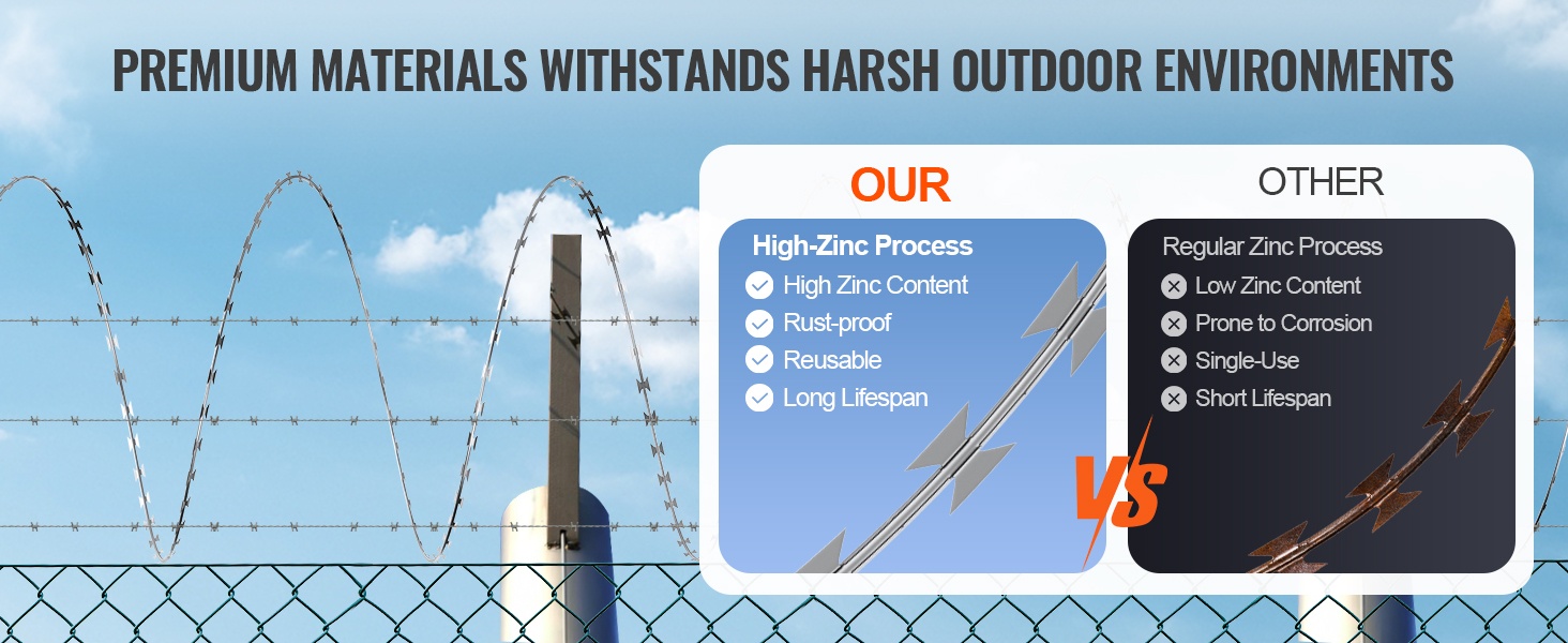 Partalanka on kuumasinkittyä, korkean lujuuden terästä, joka kestää korroosiota. Yhteensä 246 ft kattavuus, 0.02" terävät terälehdet ja 0.16" paksut ydinlangat tarjoavat tehokkaan spiraalimaisen suojavyöhykkeen rajojen ja aitojen vahvistamiseen.