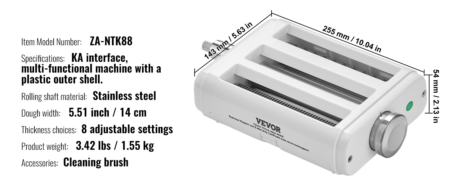 - Spagettileikkurin koko: 8.31x2.72x2.05 tuumaa / 211x69x52 mm