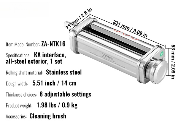 Rullan leveys on 14 cm, mikä tekee siitä sopivan leveille nuudeleille, ramenille ja laajoille pastalevyille.