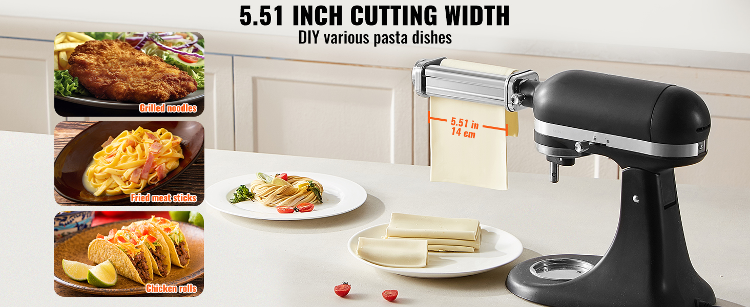 Leveys 14 cm sopii erityisesti leveille nuudeleille ja esimerkiksi ramenille. Voit valmistaa useita eri muotoja, kuten leveitä nauhoja, veitsellä leikattavia nuudeleita ja leveää pastaa, jolloin valikoima ja suutuntuma monipuolistuvat.