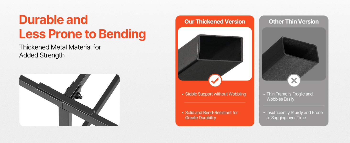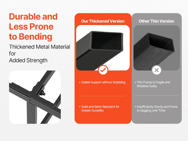 Metallinen runko on suunniteltu kestämään pitkään ja tarjoamaan tasaisen tuen koko patjan alueelle. Rakenne tukee jopa 3500 lbs / 1587.57 kg, joten se soveltuu sekä yhden että kahden hengen käyttöön ilman notkumista.