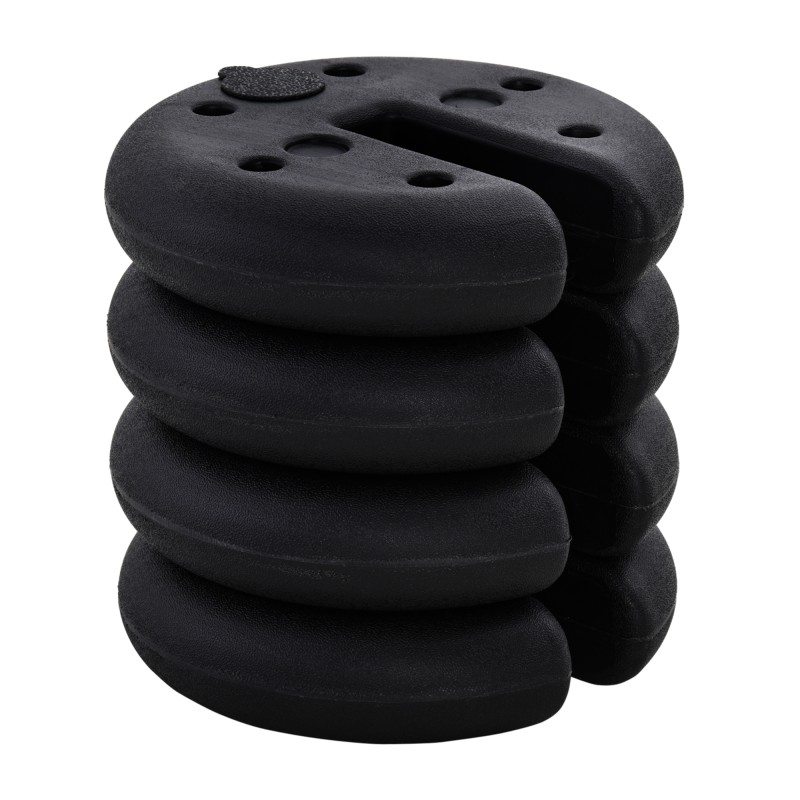 Neljän kappaleen painosarja auttaa pitämään paviljongin tai juhlateltan tukevasti paikallaan kovalla alustalla, kuten pihalaatoituksella tai asfaltilla. Ennen täyttöä kevyet painot on helppo kantaa ja kuljettaa, ja ne voidaan täyttää hiekalla, vedellä tai sementillä tarpeen mukaan.