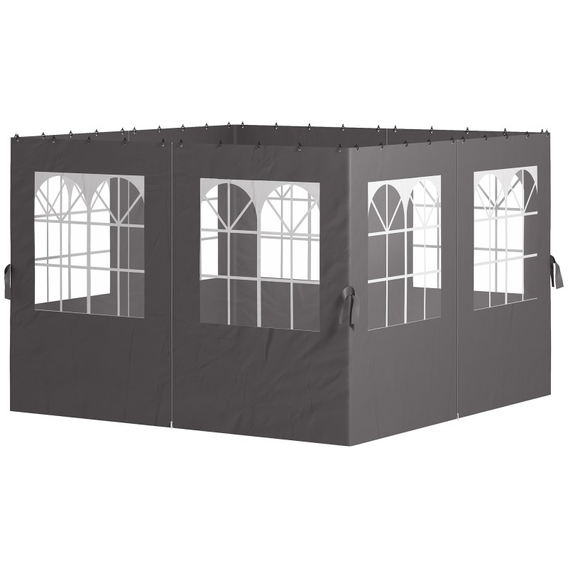 Paviljongin sivuverhot ulkokäyttöön, polyesteri, 3 x 4 m, 4 kpl, tummanharmaa