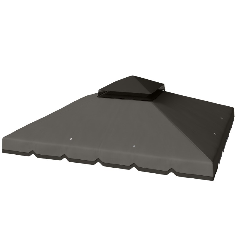 Paviljongin vaihtokatos 3x3 m, vettä hylkivä kaksitasoinen polyesterikatto, vaaleanharmaa–tummanharmaa