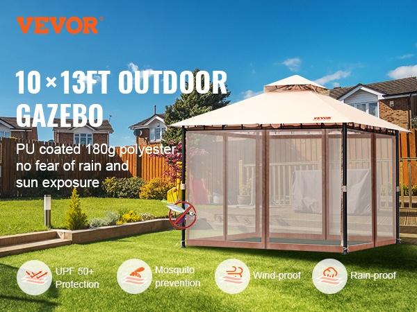 Paviljonki luo suojaisan tilan ulko-oleskeluun. Kangas tarjoaa aurinkosuojan ja auttaa pitämään tuulen ja sateen poissa lyhytaikaisen käytön aikana. Hyttysverkko tekee siitä käytännöllisen erityisesti kesäiltoina, jolloin hyönteiset voivat otherwise häiritä oleskelua.