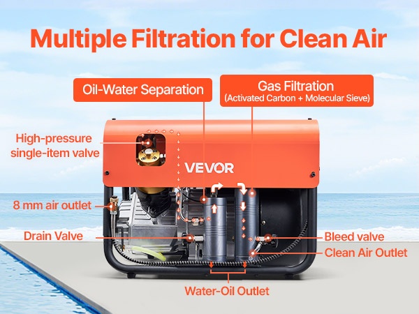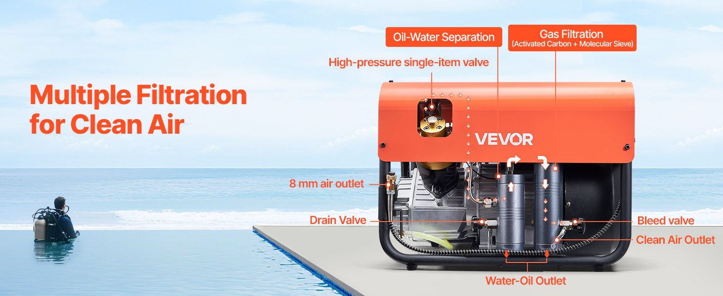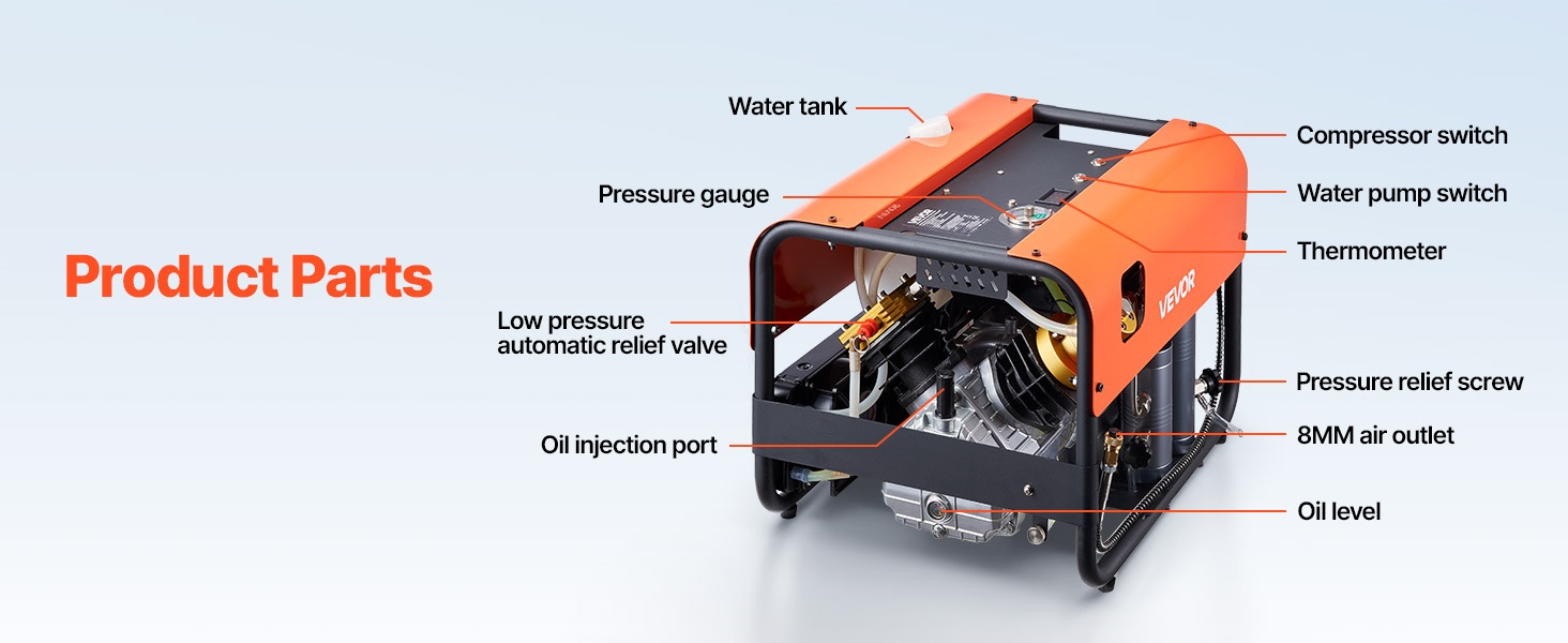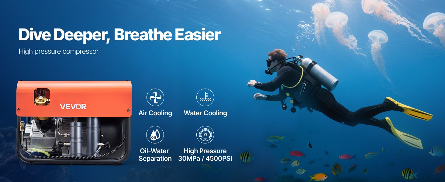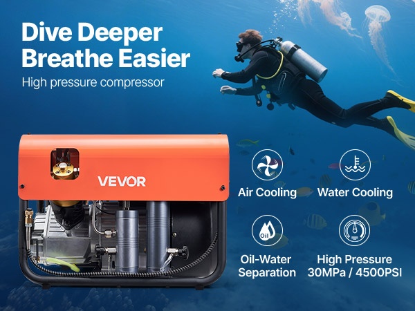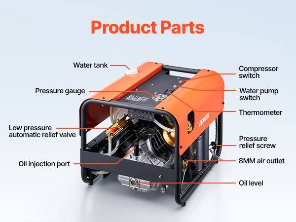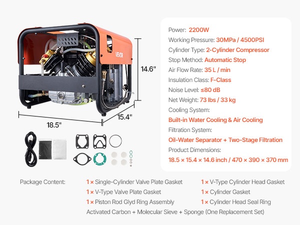 PCP-paineilmakompressori 1500 W 30 MPa nelisylinterinen 60 L/min tuuletinjäähdytys automaattipysäytys