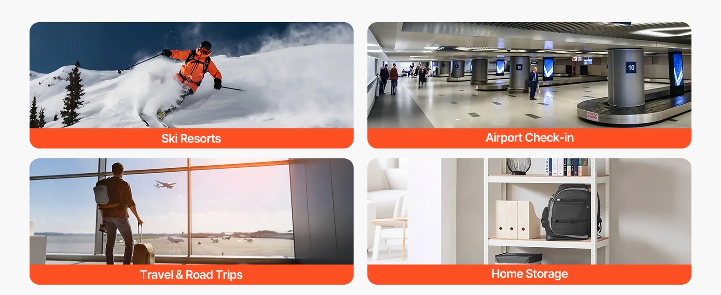 - Sopii lentomatkoille, hiihtokeskuksiin ja kotisäilytykseen