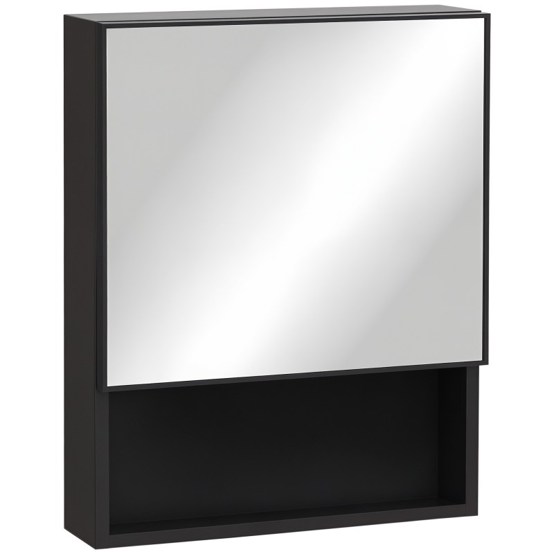 Tämä musta seinään kiinnitettävä peilikaappi auttaa pitämään kylpyhuoneen siistinä ja tavarat käden ulottuvilla ilman, että lattiatilaa kuluu. Etupuolen suuren peilin ansiosta hoidat aamun ja illan peseytymisrutiinit kätevästi samassa paikassa, ja sisällä olevat hyllyt tarjoavat hyvin tilaa koko perheen käyttämille tuotteille.