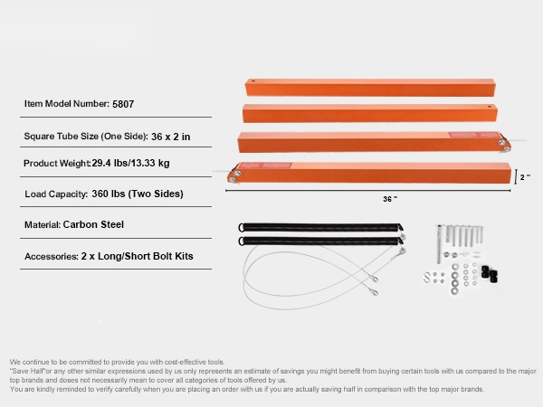 - Kuormankantokyky: 360 lbs (kaksi puolta yhdessä)