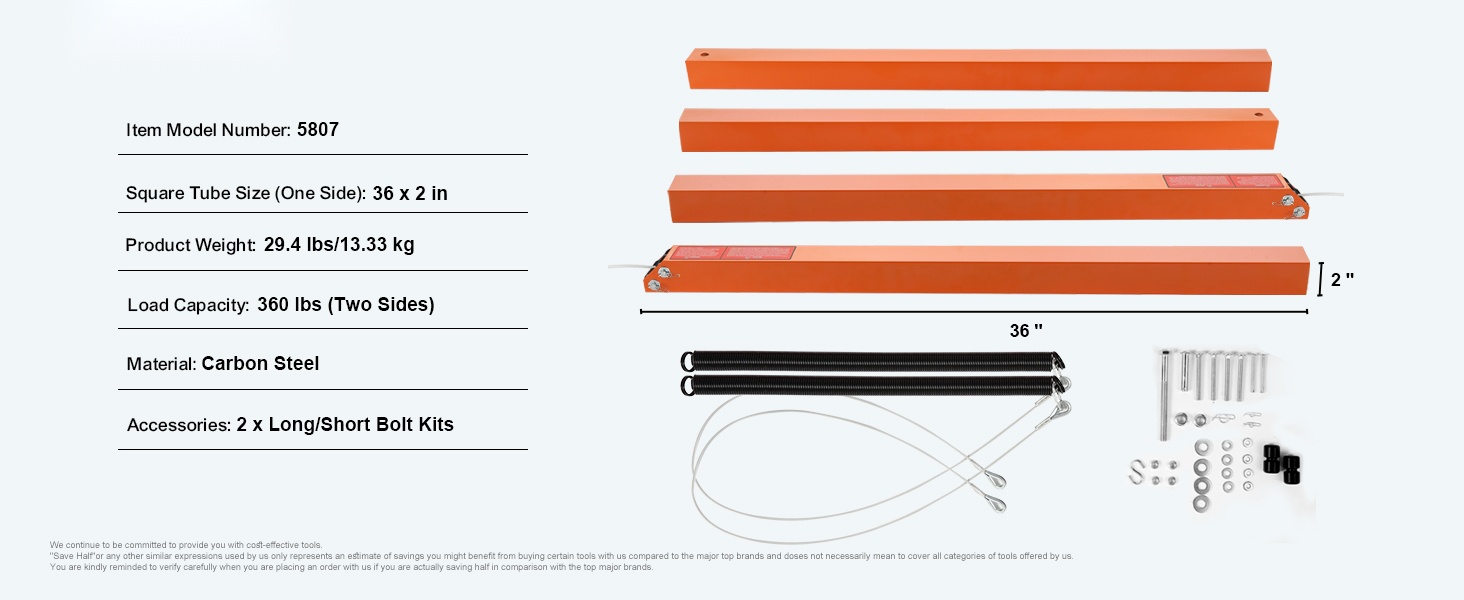 - Neliöputken koko (yksi puoli): 36 x 2 in