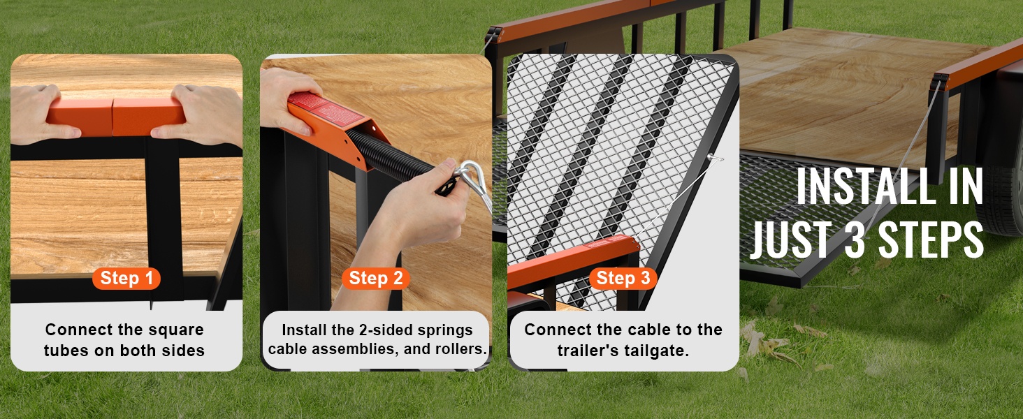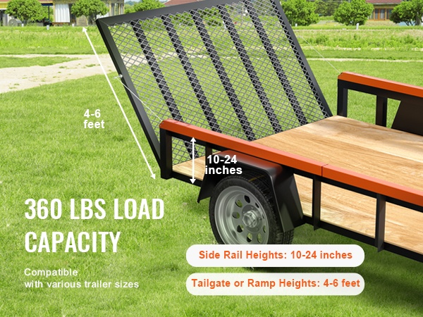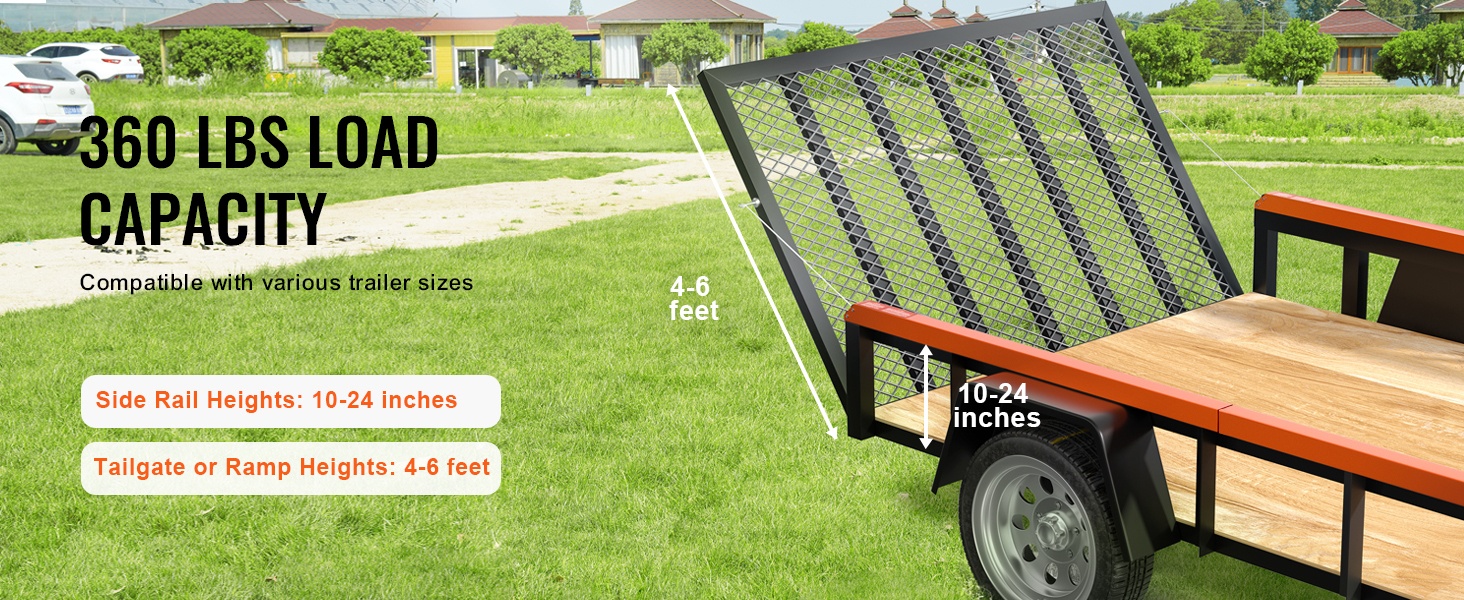Nostin sopii useimpiin avoimiin hyötyperävaunuihin. Se on suunniteltu perävaunuihin, joissa sivukaiteen korkeus on 10–24 inch, ja perälaudan tai rampin korkeus on 4–6 feet. Kaksipuolinen rakenne mahdollistaa jopa 360 lbs kokonaiskuorman (molemmat puolet yhdessä).