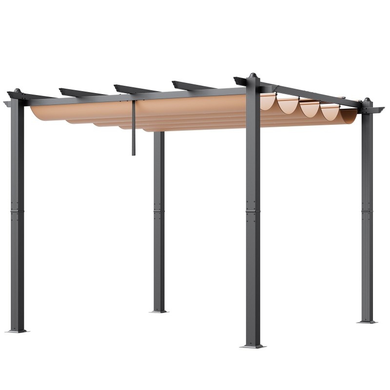 Tässä pergolassa on tukeva alumiiniseosrunko ja UV50+ -suojattu katos, joka estää jopa 98 % haitallisesta UV-säteilystä. Tilava 10'x10' rakenne tarjoaa mukavan varjostetun alueen terassille, puutarhaan tai pihalle rentoutumista ja yhdessäoloa varten.