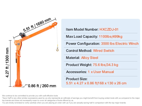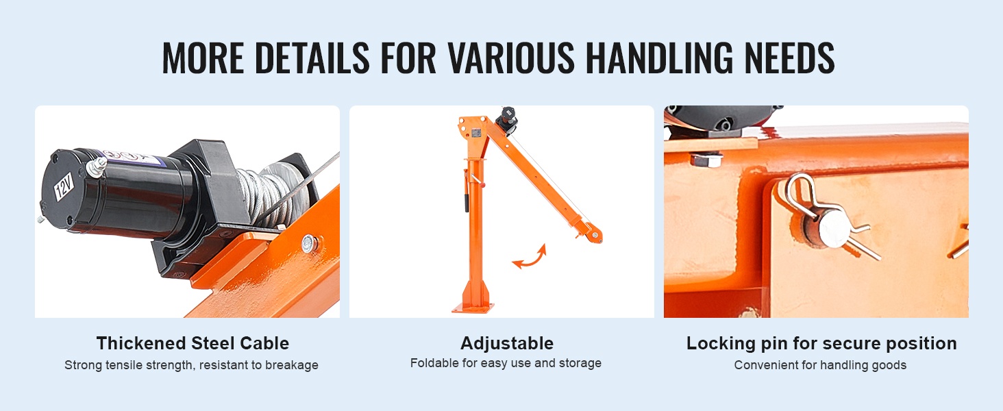 Tämä lavanosturi on valmistettu lujasta seosteräksestä ja sopii raskaiden taakkojen turvalliseen käsittelyyn jopa 1100 lbs/499 kg asti. Säästä aikaa ja voimia lastauksessa ja purussa erilaisissa käyttöympäristöissä.