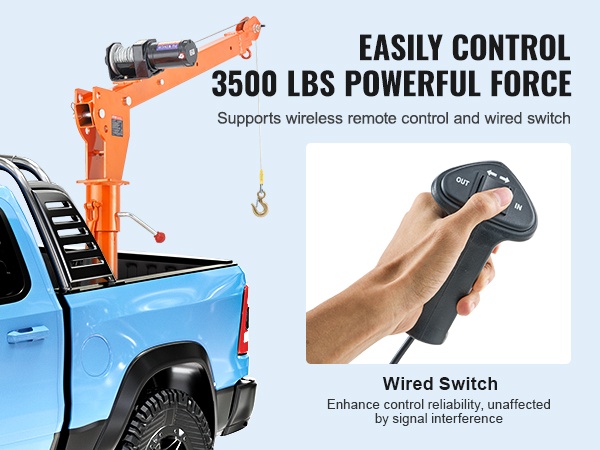 Pickup-auton lavanosturi seosteräs 499 kg 360 asteen kääntyvä sähkövinssi johdollinen ohjain