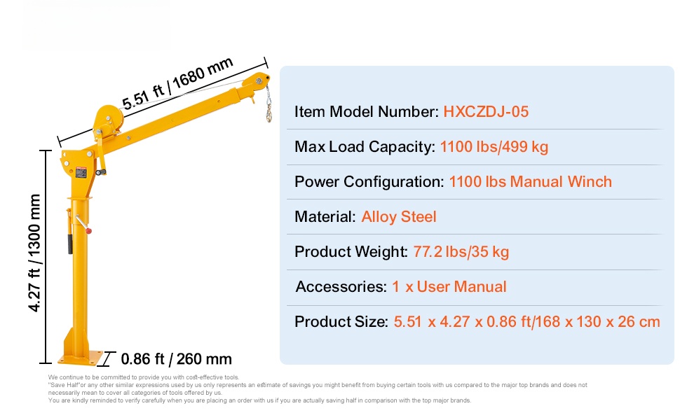 Tämä lavanosturi helpottaa raskaiden tavaroiden lastausta ja purkua työmailla, metsätöissä ja teollisuudessa. Kääntyvä puomi ja manuaalinen vinssi mahdollistavat hallitun noston myös paikoissa, joissa sähköä ei ole saatavilla.