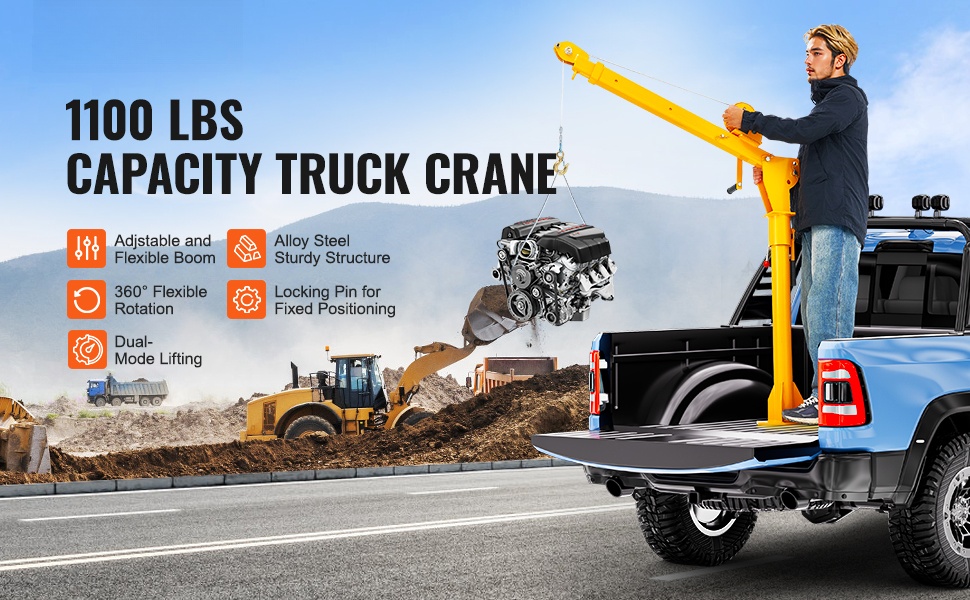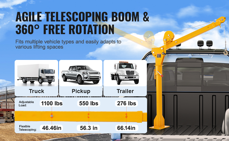 Pickup-auton lavanosturi, taitettava kuormannostin, manuaalinen vinssi, teräs, 499 kg, 360° kääntyvä