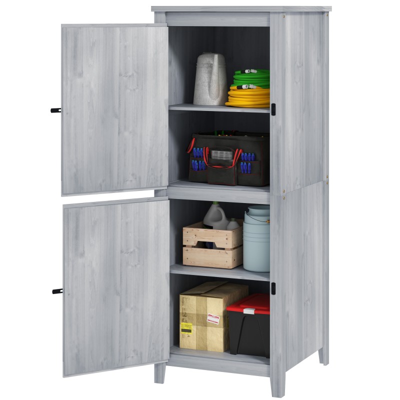 Pihakaappi puutarhatyökaluille kuusipuuta 60 x 60 x 160 cm, hellharmaa, lukittavat ovet
