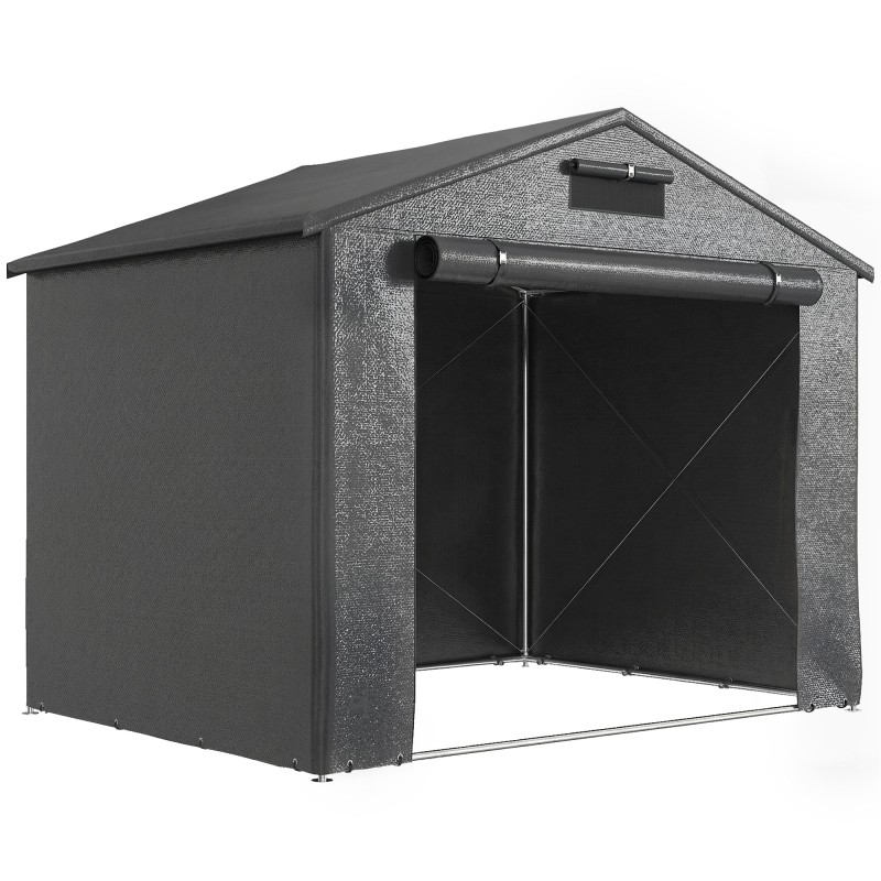 Pihavaja / säilytyssuoja teräsrungolla 2,5 x 1,8 m, vedenpitävä PE-kangas, tummanharmaa