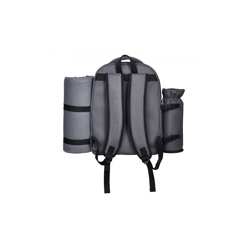 Piknik-reppu 2 hengelle, 20 l, eristetty viilennysosasto, irrotettava pulloteline, viltti, astiat ja aterimet, tummanharmaa