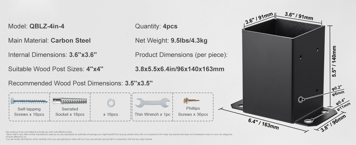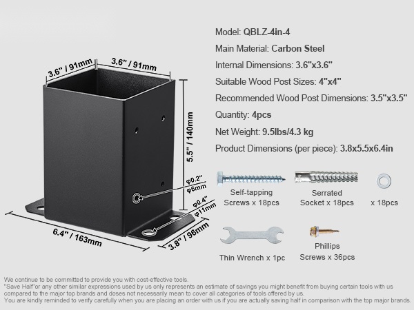 - Sopii 4''x4'' -vakiopilareille (sisämitta 91x91 mm)