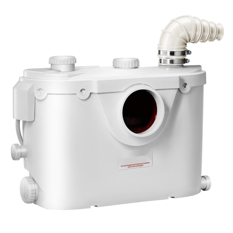 Tämä 500W pilkkova jätevesipumppu on suunniteltu wc:n, kellarin, suihkun, pesualtaan, pyykinpesukoneen ja kylpyammeen jätevesien pumppaamiseen silloin, kun viemäri on ylempänä tai kauempana. Kompakti laite pilkkoo jätteet hienoksi ja pumppaa ne viemäriin jopa 26 ft/8 m korkeuteen.