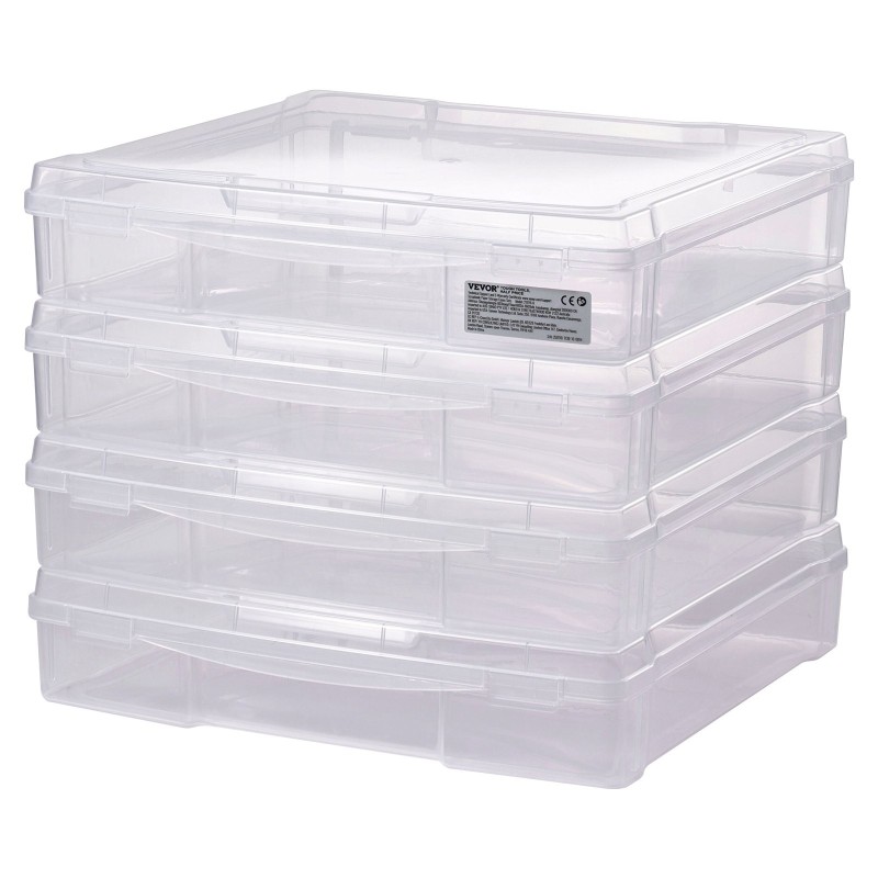 Tämä 4 kappaleen pakkaus pinottavia muovilaatikoita tarjoaa selkeän ja siistin tavan säilyttää scrapbooking-paperit, lautapelit, asiakirjat sekä erilaiset toimistotarvikkeet, työkalut ja askartelutarvikkeet. Läpinäkyvä kotelo helpottaa sisällön näkemistä yhdellä silmäyksellä, ja pyöristetyt kulmat sekä kaksinkertaiset sulkimet tekevät käytöstä turvallista ja miellyttävää.