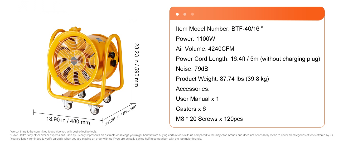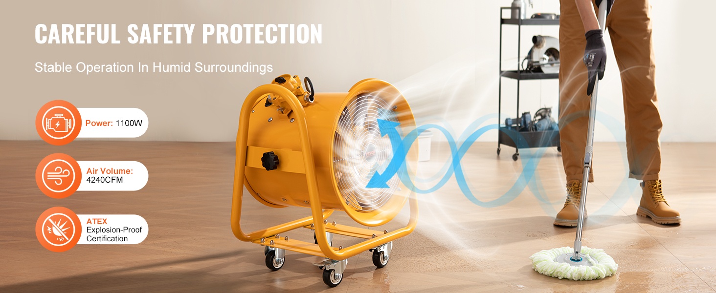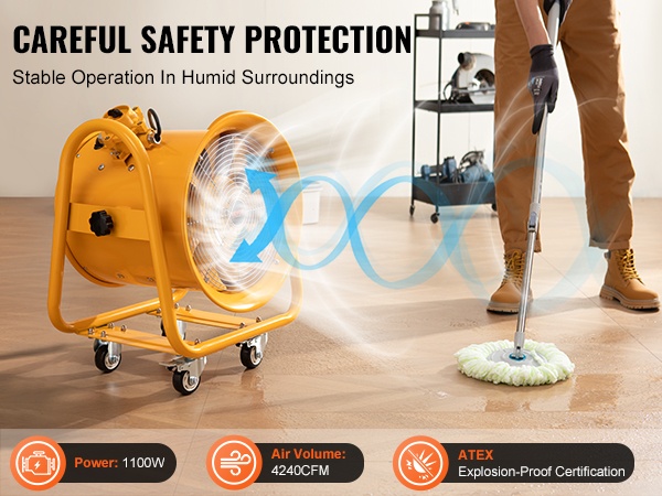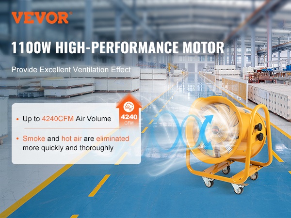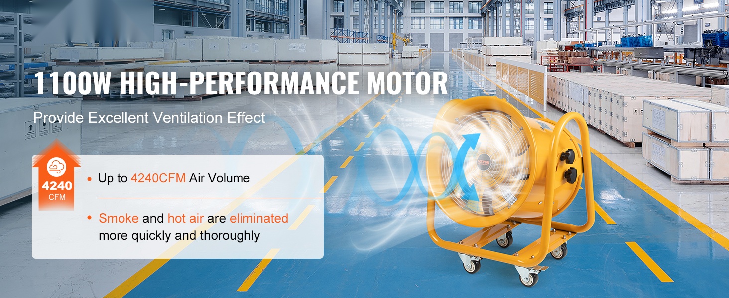 Poistoilmapuhallin on varustettu tehokkaalla AC-moottorilla, joka tuottaa nopean ilmanvaihdon ja auttaa poistamaan savun, pölyn ja lämpimän ilman tiloista lyhyessä ajassa. Korkea pyörimisnopeus, 2800rpm, tukee nopeaa ilmavirtausta vaativissa olosuhteissa.