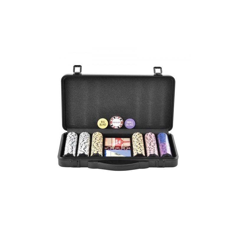 Tämä setti sisältää kattavan valikoiman pelivälineitä mukaviin pokeri-iltoihin. Hieman mattapintaiset pelimerkit tuntuvat kädessä miellyttäviltä ja lisäävät pelikokemuksen laatua. 300kpl setti sopii hyvin noin 7–8 pelaajalle ja määrät on suhteutettu käytännön peliä varten.