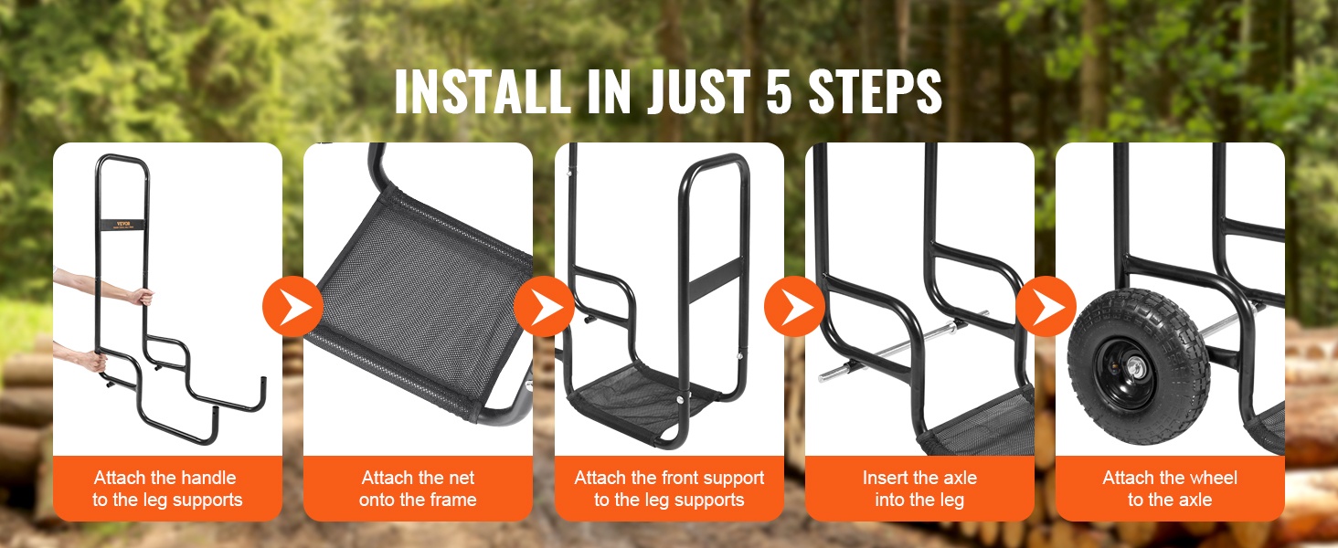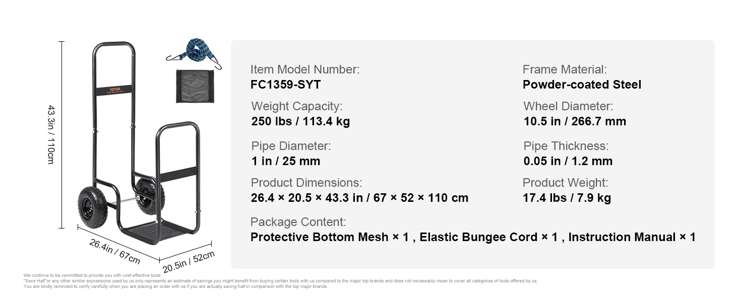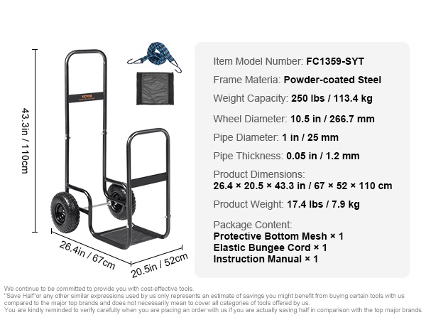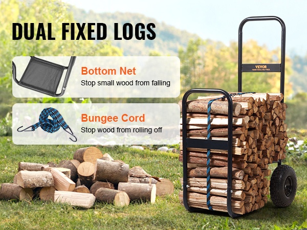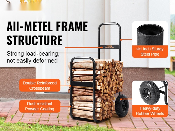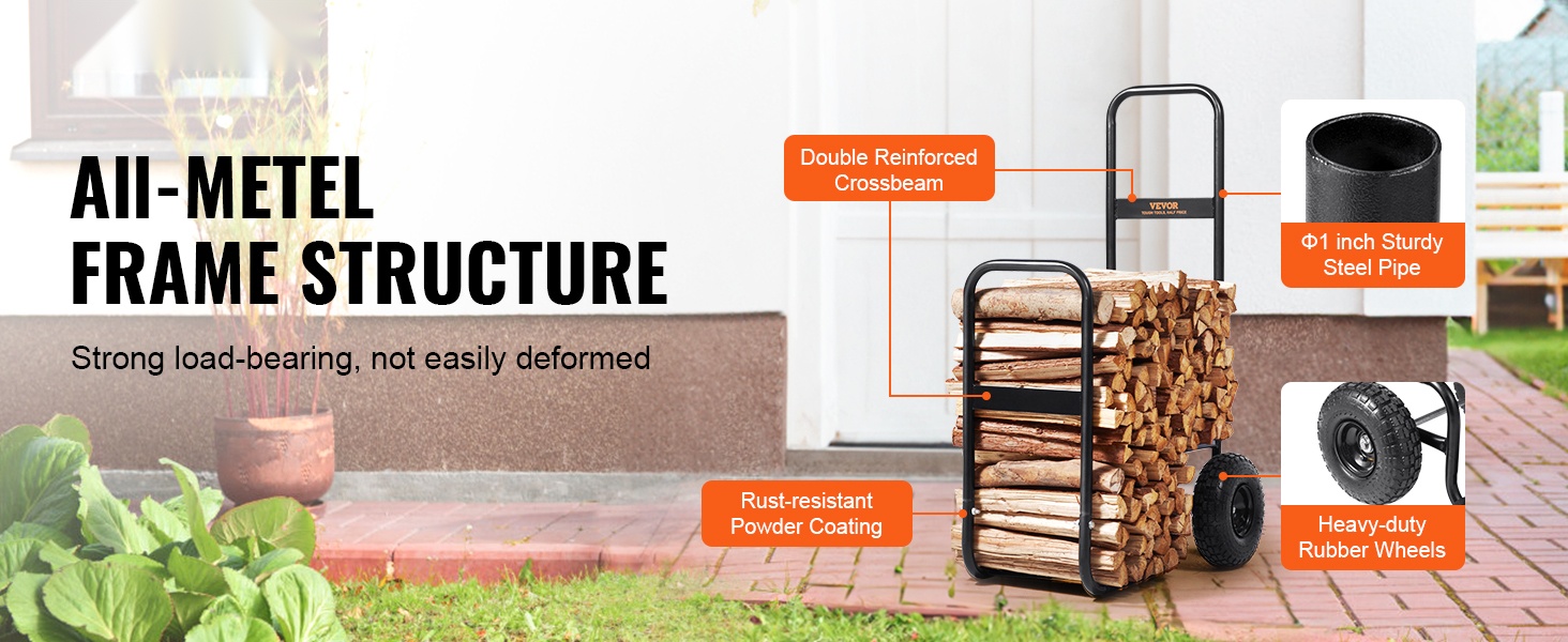 Tämä tukeva polttopuun kuljetusvaunu helpottaa puiden siirtämistä takalle, tulipesälle tai nuotiopaikalle. Pulverimaalattu teräsrunko kestää hyvin ruostetta ja kulutusta, ja 1"/25 mm paksut putket pitävät rakenteen vankkana ilman taipumista.