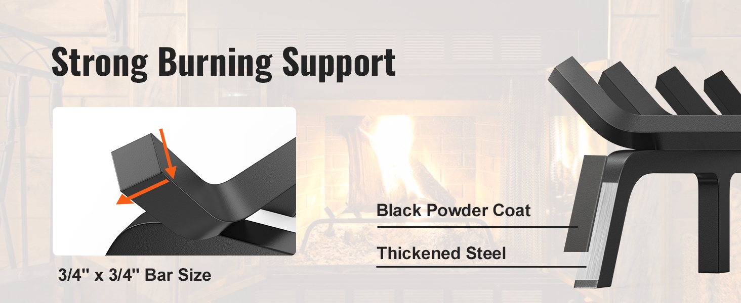Ristikko on valmistettu 3/4’’ jauhemaalatuista terästangoista, jotka kestävät korkeita lämpötiloja ja puiden painon vääntymättä tai vaurioitumatta. Jauhemaalattu pinta parantaa kestävyyttä ja helpottaa puhdistusta.