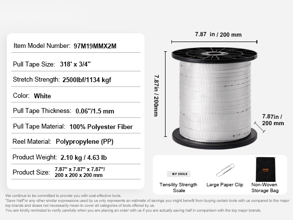 - Vetonauhan koko: 318' x 3/4" (96.9 m x 1.9 cm)
