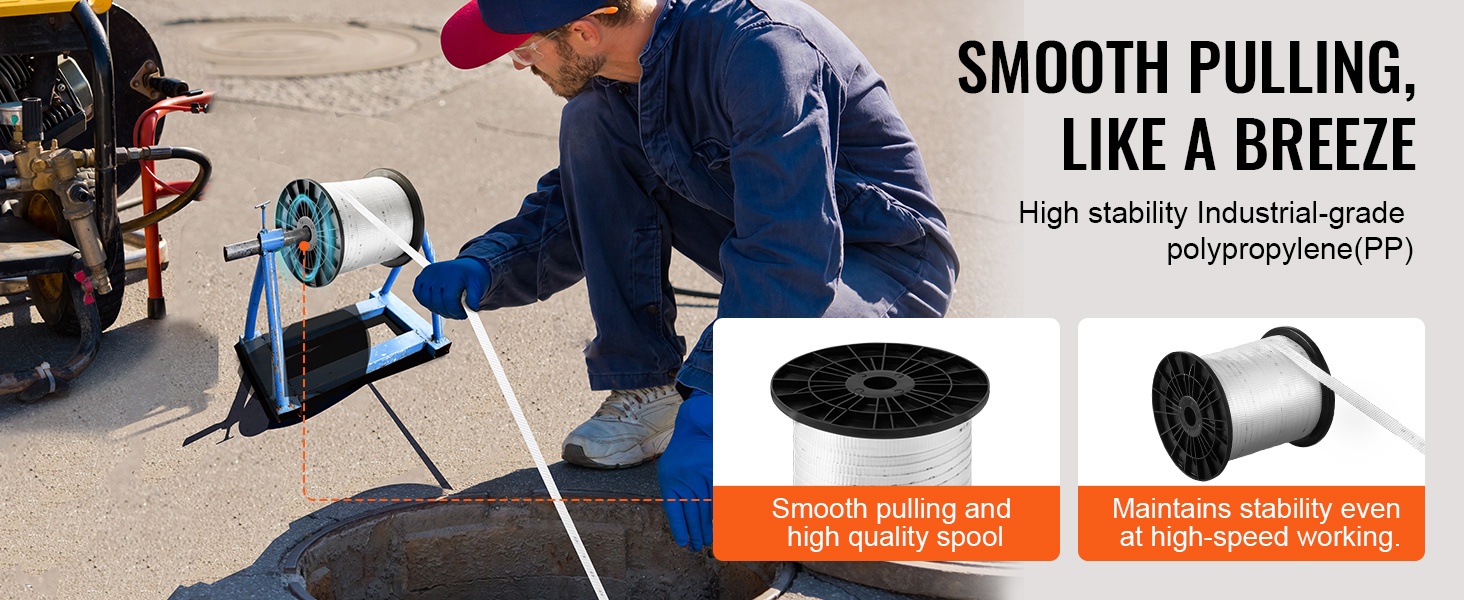 Esivoideltu vetonauha liukuu helposti putkien ja kanavien läpi, mikä vähentää kitkaa ja pienentää katkeamisriskiä kesken työn. Se soveltuu hyvin pitkän matkan vetoihin ja tarjoaa tasaisen, luotettavan liikkeen eri asennuskohteissa.