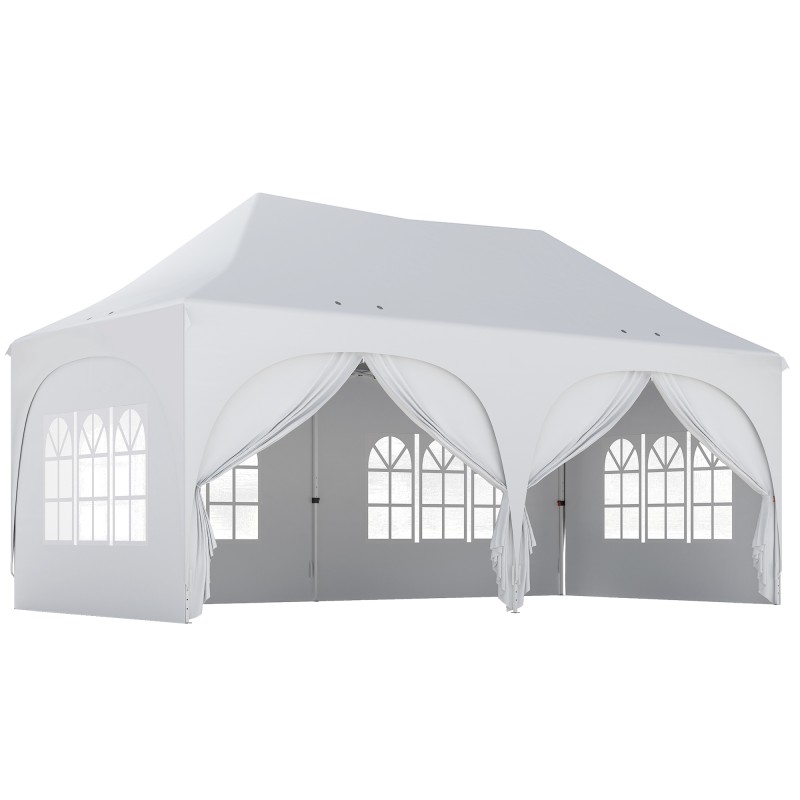 3 x 6 m kokoinen teltta tarjoaa runsaasti tilaa seisomiseen, istumiseen ja tarjoilupöydille puutarhajuhlia, grillailua ja perhejuhlia varten.