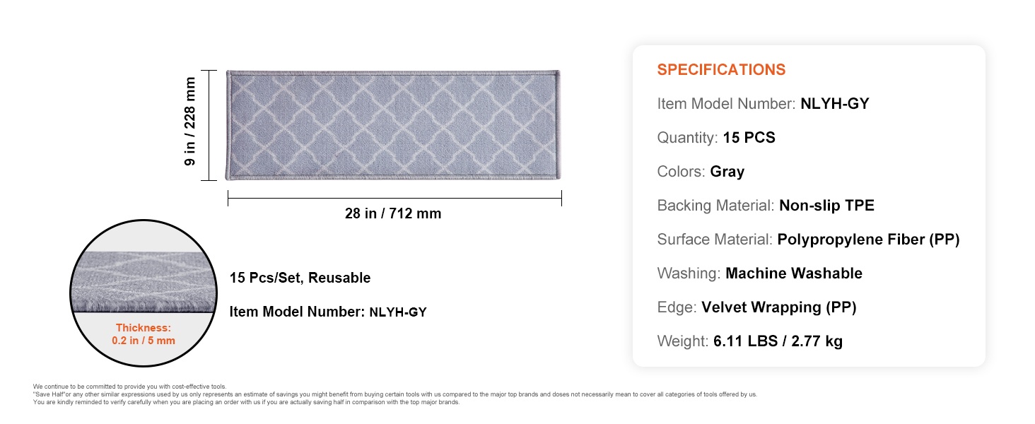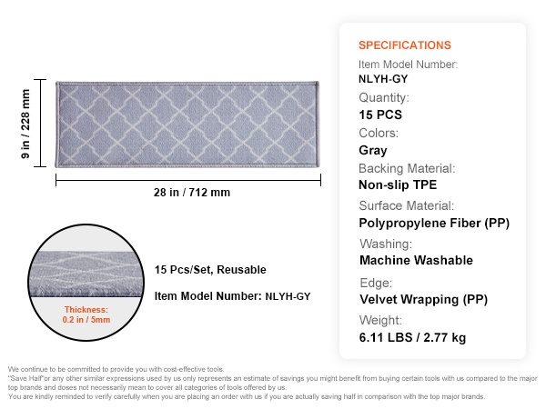 Nämä porrassuojamatot lisäävät pitoa, suojaavat puisia portaita ja tekevät askelmista miellyttävämmät paljaille jaloille, lapsille, ikäihmisille ja lemmikeille. Yksi pakkaus sisältää 15 porrastäsmämattoa, värinä vaaleanharmaa.