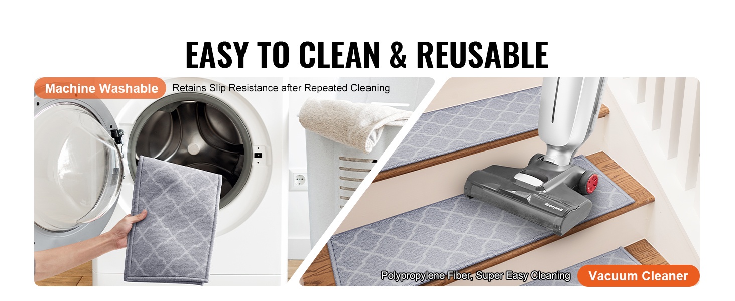 Portaiden matot voidaan puhdistaa imuroimalla tai konepesussa. Pesun jälkeen ne säilyttävät muotonsa ja liukuestokykynsä. Matot voi myös irrottaa ja asettaa uudelleen ilman liimajäämiä tai portaiden pinnan vaurioitumista.