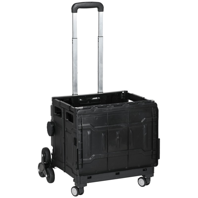 Portaikkovaunu / ostoskärry, taittuva, teleskooppikahva, 51 l, kantavuus 80 kg, musta